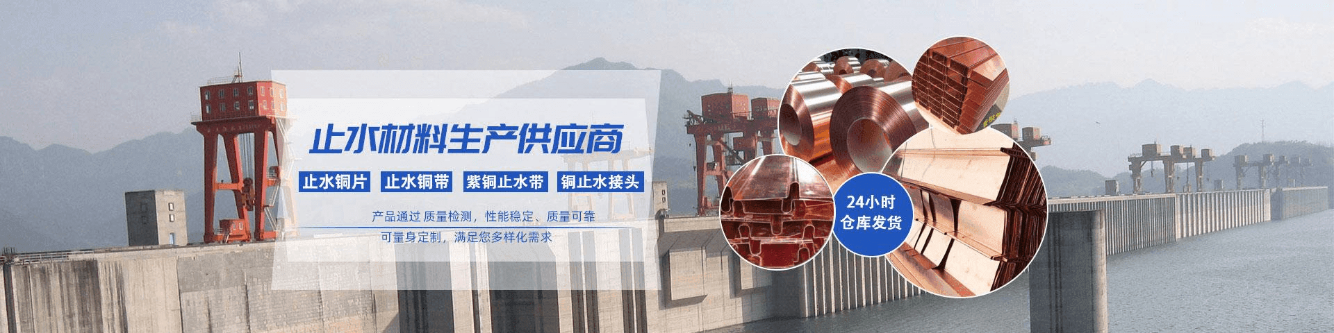 . 公司所有產(chǎn)品均按標(biāo)準(zhǔn)《DLT5115-2008》 或《DLT5215-2005》執(zhí)行,產(chǎn)品經(jīng)各省市質(zhì)量檢測(cè)通過(guò),為國(guó)內(nèi)各大水利建設(shè)等國(guó)內(nèi)各大水利建設(shè)集團(tuán)供應(yīng)商。主營(yíng)止水銅片,止水銅帶,止水銅板,紫銅止水等多品種,型號(hào)規(guī)格齊全,可根據(jù)設(shè)計(jì)圖紙加工訂制,生產(chǎn)時(shí)間可縮短至24小時(shí)。